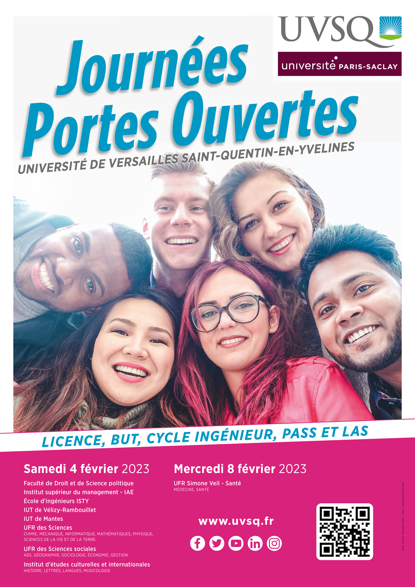 La JPO de la Faculté de Droit et Science politique aura lieu le samedi 27 janvier 2024 sur le campus de Saint-Quentin-en-Yvelines de 14h à 17h.